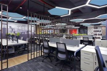 This 8050 sq. ft. commercial office in Thane redefines modern workspaces. Designed for sophistication and functionality, the office features striking ceilings that inspire, green accents that energize, and carefully curated lighting that fosters creativity. A true hub for ambition and collaboration, this workspace sets the stage for boundless possibilities.